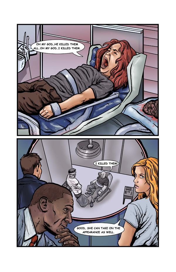 These next two pages start to give us a hint of what Director Adams saw in Cybil’s DNA. We also see the turmoil her Mother and Father are in after being told that Cybil is dead. Clearly the OSS thinks Cybil is a valuable asset and wants to keep her to themselves.